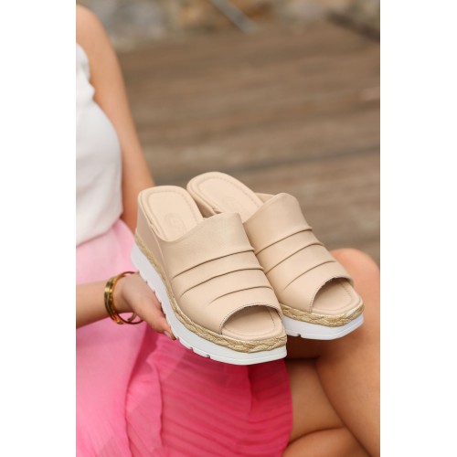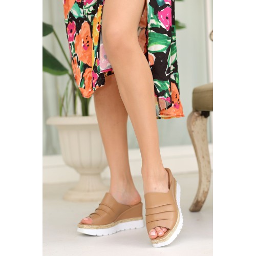 Hakiki Deri Önü Ve Arkası Açık Dolgu Topuklu Ortopedik Kadın Terlik